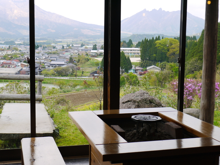一邊凝視阿蘇的極好的景色請過與好吃飯菜一起奢侈的人時一邊。