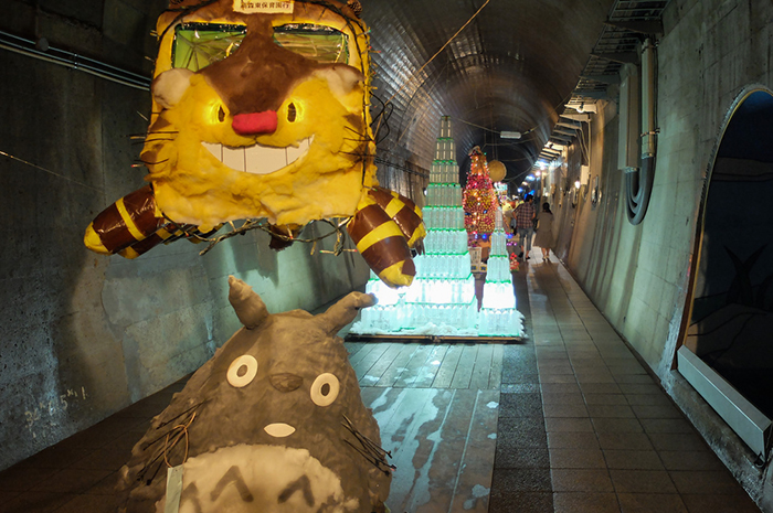 隧道內設有完善的步道,以及水珠呈現巧妙動作的噴水裝置(使用特殊音波讓水呈現球狀,運用調整頻閃亮光的閃光間隔時間讓水珠向下掉,向上跑或停止,是可以讓水珠產生奇妙動作的裝置)。隧道內每年7月時會舉辦「七夕祭典」,11月中旬~12月則是「聖誕幻想世界」。